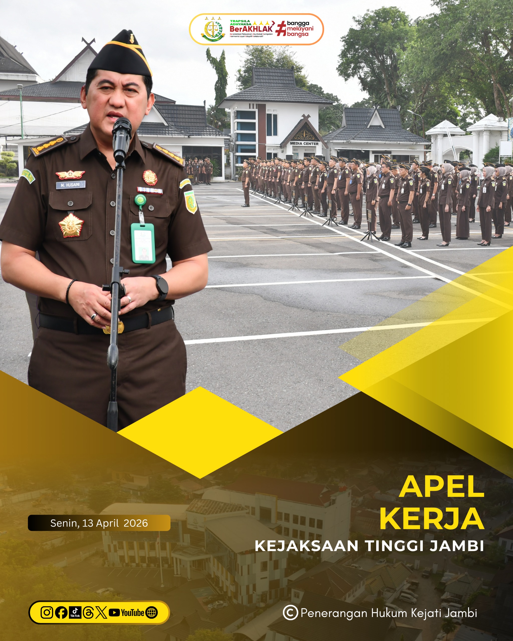 Kejaksaan Tinggi Jambi melaksanakan apel pagi rutin yang diikuti oleh seluruh pegawai pada Senin (13/04/2026) bertempat di halaman Kantor Kejaksaan Tinggi Jambi.