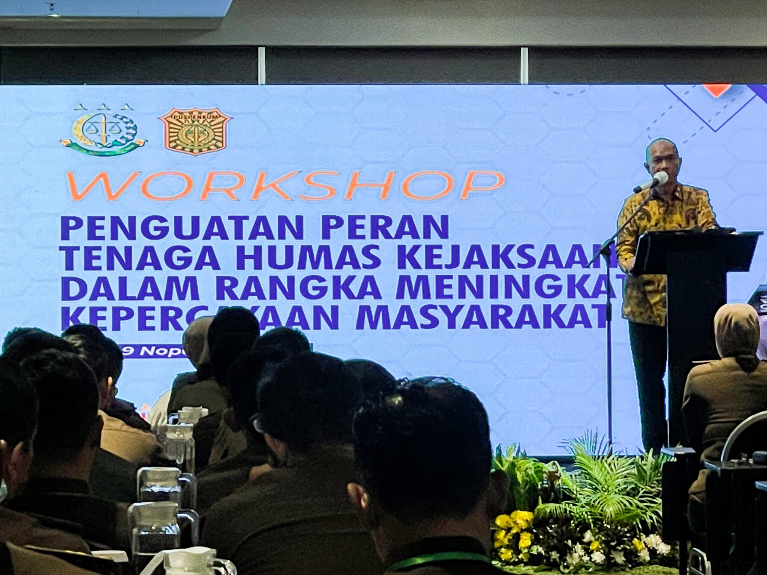 Workshop kehumasan kali ini mengangkat tema Penguatan peran tenaga humas kejaksaan dalam rangka meningkatkan kepercayaan masyarakat, langsung dibuka oleh JAM Intel dan dihadiri Kapuspenkum Dr. Ketut Sumendana dan didampingi Kabid Medmas R Raharjo Yusuf Wibisono, Kabid Penkum Luhkum Dr. Marta Berliana. Selanjutnya Kejaksaan Tinggi Jambi mengutus 3 orang perwakilan guna peningkatan SDM yakni Kasi Penkum dan 2 staf jabatan fungsional kehumasan.