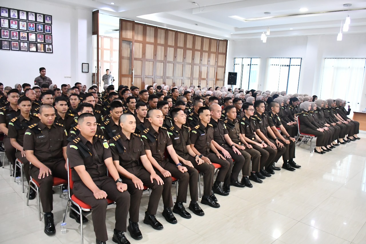Kepala Kejaksaan Tinggi Jambi Dr. Hermon Dekristo,SH.,MH memberikan pengarahan kepada 170 CPNS se-Wilayah Hukum Kejati Jambi pada Kamis (12/06/2025), bertempat di Aula Jaksa Agung R. Soeprapto.