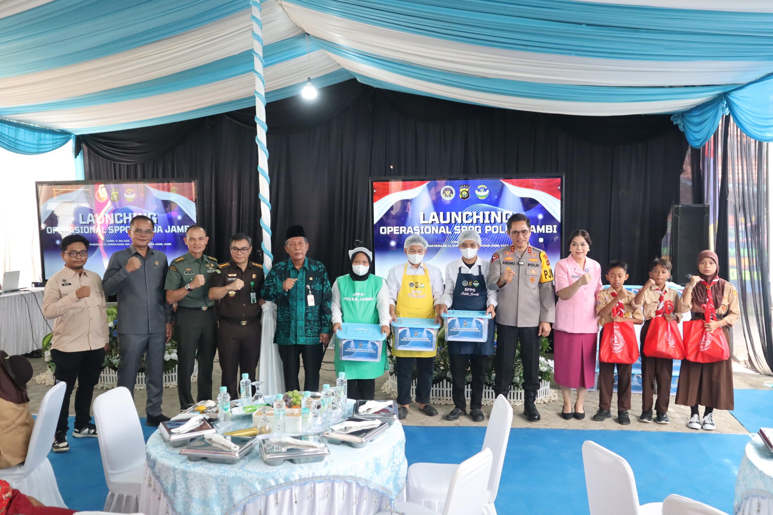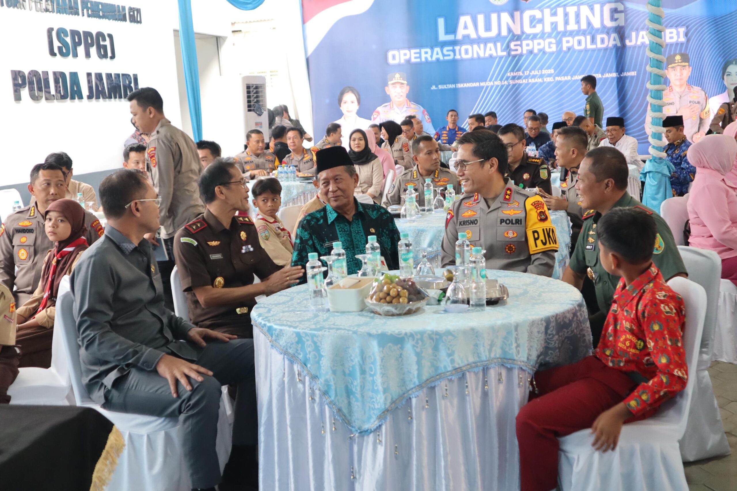 Kepala Kejaksaan Tinggi Jambi Jambi Dr. Hermon Dekristo,SH.,MH menghadiri launching Operasional Satuan Pelayanan Pemenuhan Gizi (SPPG) Kepolisian Republik Indonesia (Polri), bertempat di SPPG Polda Jambi, Sungai Asam, Pasar Jambi, Kamis (17/7/2025).