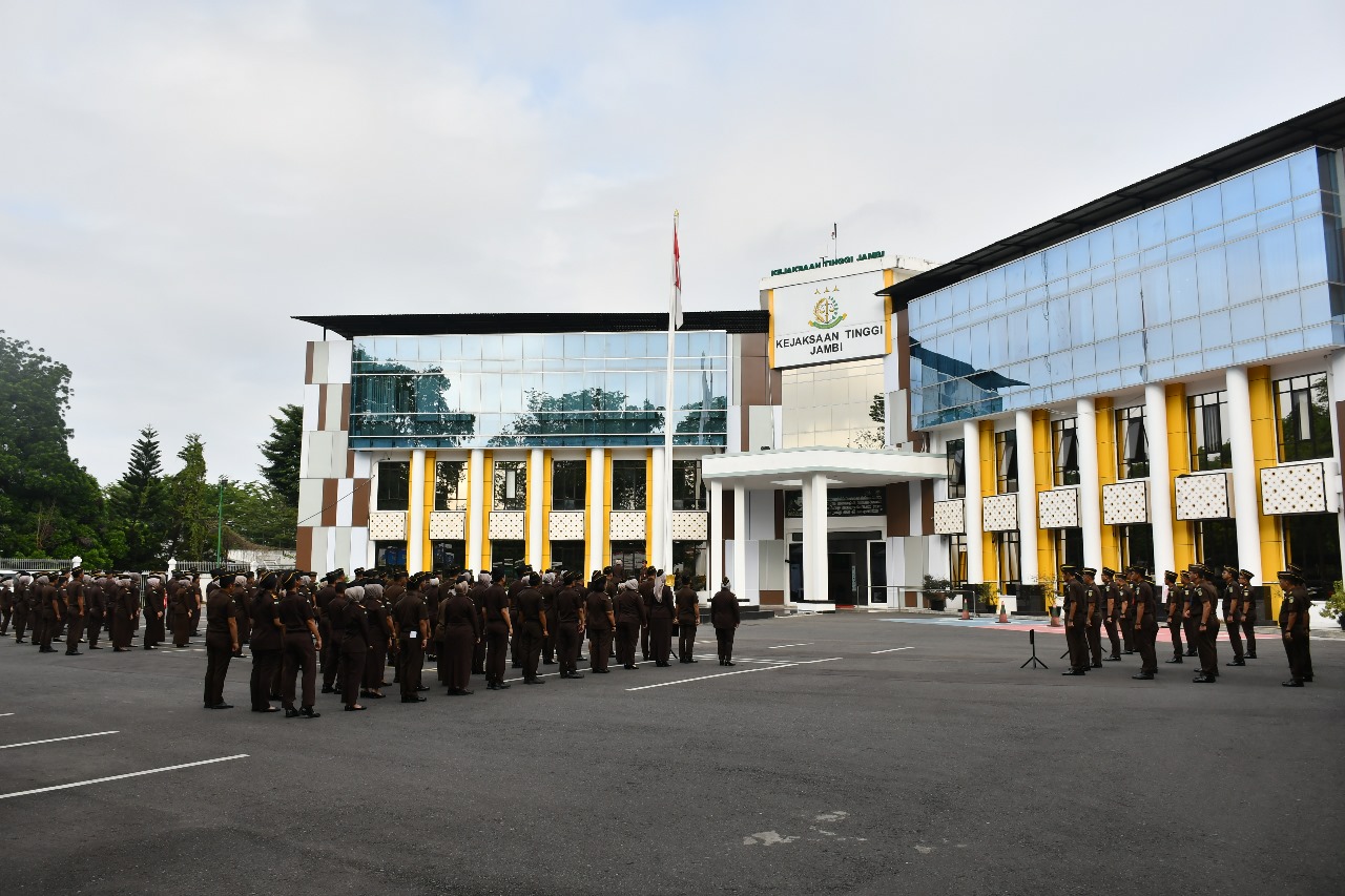 Kejaksaan Tinggi Jambi melaksanakan apel pagi rutin yang diikuti oleh seluruh pegawai pada Senin (23/06/2025) bertempat di halaman Kantor Kejaksaan Tinggi Jambi.