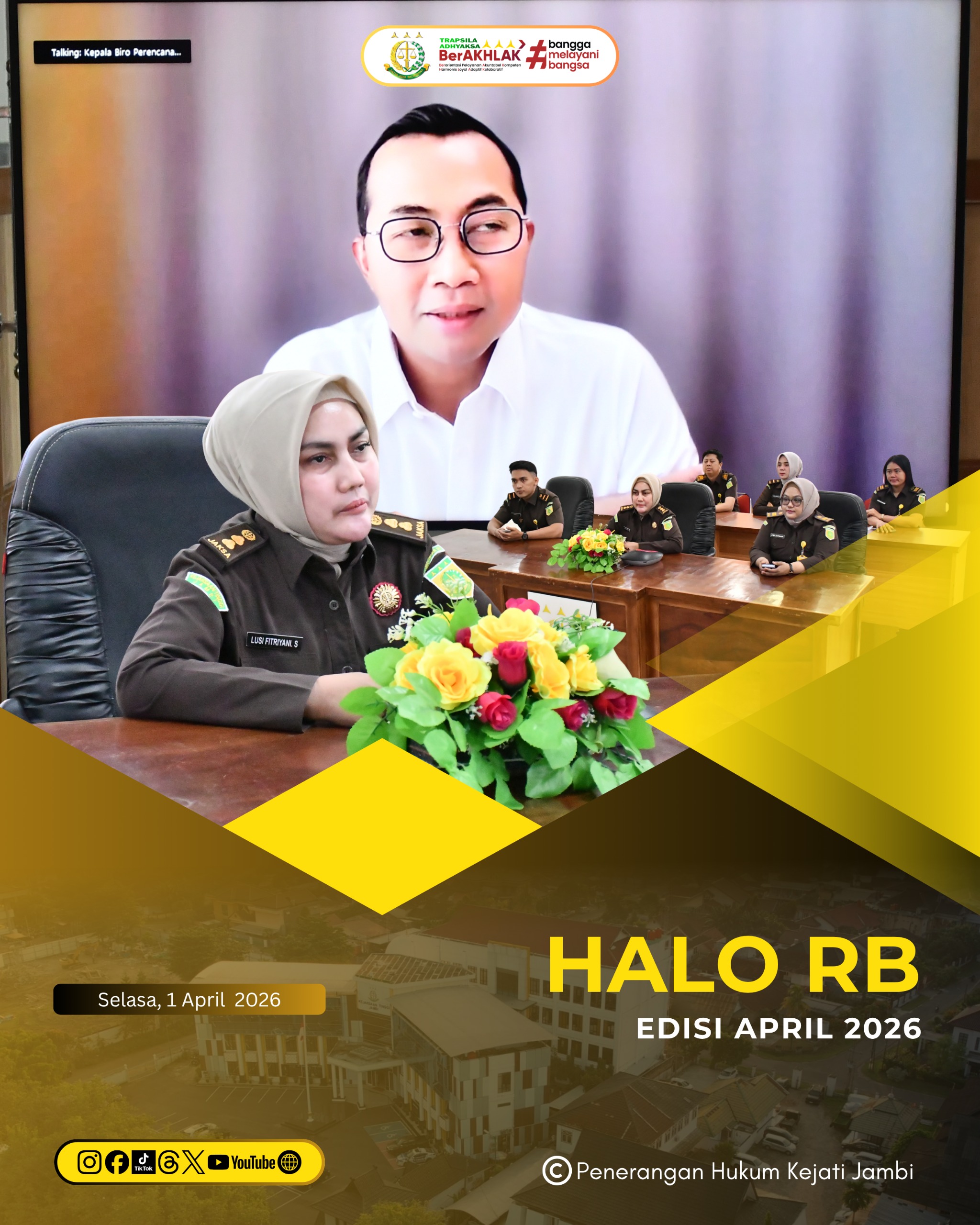 Kasubbag Daskrimti Beserta Staf Bidang Pembinaan Kejaksaan Tinggi Jambi mengikuti kegiatan Halo Reformasi Birokrasi (RB) Edisi April 2026 dengan tema “Kebijakan Pelaksanaan Pemantauan dan Evaluasi Kinerja Penyelenggaraan Pelayanan Publik (PEKPPP) Tahun 2026” yang dilaksanakan secara daring pada Rabu (01/04/2026).